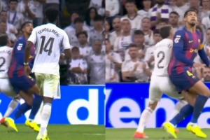 弗里克的球隊整場控球占優(yōu),但踢法很容易預(yù)測、缺乏銳度。只有費(fèi)爾明和拉什福德偶爾能突破皇馬防線。佩德里被重點(diǎn)盯防,亞馬爾無法正面拿球,費(fèi)蘭觸球機(jī)會少且很難獲得舒服的射門位置,全場僅兩次向庫爾圖瓦射門。上半場最佳進(jìn)攻是費(fèi)爾明的進(jìn)球,佩德里斷球后迅速轉(zhuǎn)化為絕對機(jī)會。稍后,費(fèi)爾明頭球攻門,又被赫伊森在門線救險。