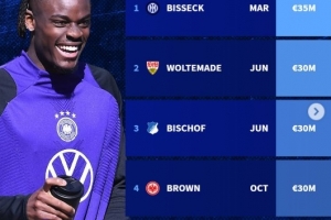 體育資訊10月16日訊 德國轉(zhuǎn)會(huì)市場(chǎng)盤點(diǎn)了足球強(qiáng)國2025年上演首秀的球員,德國共5名球員上演首秀,這包括了比塞克、沃爾特馬德。