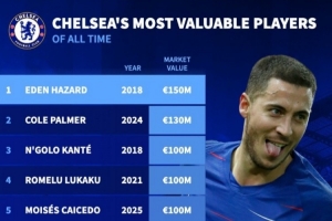 體育資訊10月30日訊 藍軍名宿阿扎爾已經入選英超名人堂,《轉會市場》統計顯示他仍然是切爾西隊史德轉身價最高球員。
