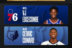 體育資訊10月30日訊 NBA官方公布了最新一期的NBA新秀榜,埃奇庫(kù)姆排在第一。而灰熊的錫德里克-科沃德排名第二,迪倫-哈珀排名第三。