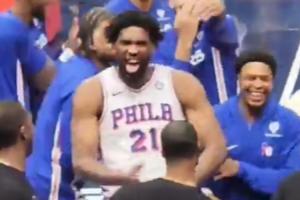 據記者報道,一名奇才球迷整場比賽都在對著76人隊的替補席噴垃圾話。76人完成逆轉后,以恩比德為首的76人替補席對他進行了反擊。