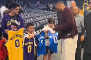 相關(guān)閱讀:國王新援!威少到場觀戰(zhàn) 與湖人助教布魯克斯開心交流