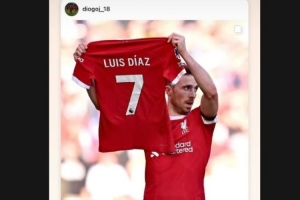 就在那張照片拍攝前不久的2023年10 月底,路易斯-迪亞斯的父母在他們的祖國哥倫比亞被綁架。為了表示支持,若塔在10月29日利物浦對陣諾丁漢的聯(lián)賽(3-0)中打入首球后,舉起了隊友兼好友的球衣。
