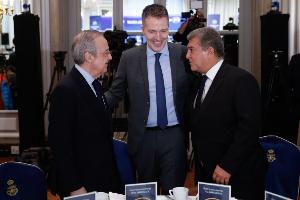 然而在馬德里法院宣布裁決結(jié)果后,巴薩的態(tài)度與皇馬截然不同,雖然巴薩尚未正式推出歐超項(xiàng)目,但球隊(duì)主席拉波爾塔在與歐足聯(lián)主席切費(fèi)林建立對話后,俱樂部已逐步回歸歐足聯(lián)體系。