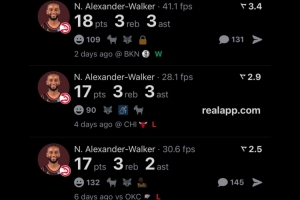 過(guò)去5場(chǎng)比賽,亞歷山大-沃克場(chǎng)均可以貢獻(xiàn)18.4分2.6籃板3助攻。