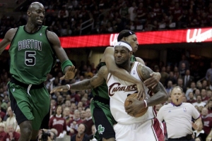 2010年東部半決賽(騎士VS綠軍)G4中,詹姆斯在完成后場(chǎng)搶斷后準(zhǔn)備上籃,緊隨身后的皮爾斯采取犯規(guī)戰(zhàn)術(shù),兩人互相抱著摔入了觀眾席。詹姆斯的母親在現(xiàn)場(chǎng)觀戰(zhàn)憤怒不已,詹姆斯在一旁對(duì)著母親大吼道:“Sit down!(你給我坐下!)。