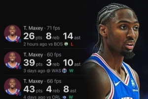 在賽前的前五場比賽中,馬克西場均能得到35.2分,上一個賽季前五戰(zhàn)場均得分高于他的還是2019年的哈登(場均36.6分)。