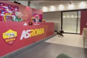 《羅馬體育報》曬出的視頻顯示,當加斯佩里尼回答記者提問時,一只貓闖進了新聞發(fā)布廳。這只貓咪恰好就在加斯佩里尼發(fā)言的講臺附近開始喵喵叫,教練關于本賽季陣容可能調(diào)整的論述被貓叫聲打斷。
