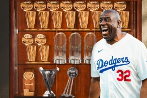 魔術(shù)師曾在1979年率隊(duì)拿下NCAA冠軍,他作為NBA球員生涯拿下5冠、作為湖人小老板拿下5冠、作為WNBA球隊(duì)洛杉磯火花小老板拿下1冠、作為MLS(美國足球大聯(lián)盟)球隊(duì)洛杉磯FC小老板拿下1冠、作為道奇老板已經(jīng)拿下3冠。