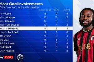 體育資訊11月2日訊 天空體育盤點了本賽季歐洲主流聯(lián)賽球員參與進球榜(進球+助攻),以下為具體榜單(只統(tǒng)計聯(lián)賽):