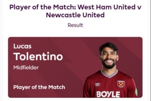 體育資訊11月3日訊 英超第10輪西漢姆聯(lián)主場(chǎng)3-1擊敗紐卡,據(jù)賽后英超官方消息,帕奎塔被評(píng)為此役全場(chǎng)最佳球員,獲43%的投票。