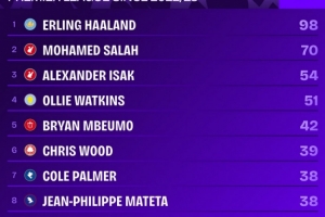 體育資訊11月3日訊 英超第10輪比賽,哈蘭德梅開(kāi)二度,幫助曼城主場(chǎng)3-1擊敗伯恩茅斯。Squawka統(tǒng)計(jì)了22-23賽季以來(lái)球員在英超的進(jìn)球數(shù)量,哈蘭德98球斷層居首。