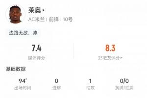 體育資訊11月3日訊 意甲第10輪比賽,萊奧送出助攻,幫助米蘭主場(chǎng)1-0擊敗羅馬。