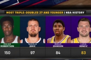 據(jù)統(tǒng)計,東契奇未超27歲(目前26歲254天)已經(jīng)83次砍下三雙,NBA歷史第4,僅次于奧斯卡-羅伯特森(150次)、約基奇(97次)、魔術師(84次)。