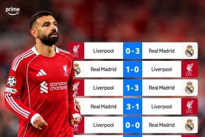 據媒體統計,近9次對陣皇馬,利物浦僅取勝1場,具體戰(zhàn)績1勝1平7負,打進6球丟17球。