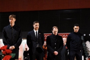 體育資訊11月4日訊 北京時間周三凌晨的歐冠聯(lián)賽階段第4輪比賽,皇馬將在安菲爾德挑戰(zhàn)利物浦。本場比賽之前,皇馬主帥阿隆索、后衛(wèi)赫伊森和阿諾德、公關(guān)總監(jiān)布特拉格諾一行來到若塔紀念碑前,阿隆索獻上鮮花向這名7月因車禍不幸離世的利物浦前鋒表達敬意。
