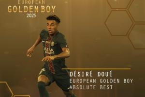 體育資訊11月04日訊 金童獎官方宣布,20歲的巴黎前鋒杜埃榮膺2025年金童獎,擊敗了居萊爾、赫伊森、庫巴西等候選球員。