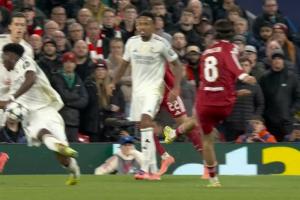 體育資訊11月05日訊 利物浦vs皇馬第31分鐘,索博打門擊中瓊阿梅尼手臂,裁判檢查點球,VAR介入。