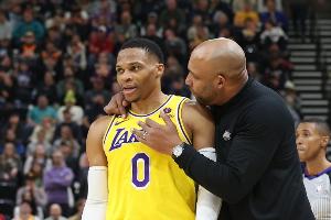 今日,湖人記者Harrison Faigen在個(gè)人社交媒體上發(fā)布了一張圖(如下),并配文:“只有一個(gè)人能執(zhí)教拉文+莫蘭特+威少的后場(chǎng)?!?/p>