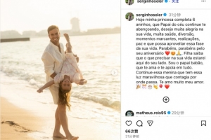 塞爾吉尼奧寫道:“今天我的小公主滿6歲了,愿在天堂的家人們繼續(xù)保佑你,愿你平安喜樂,健康成長,生活五彩斑斕,享受生活帶來的樂趣。爸爸會一直陪在你身邊,永遠(yuǎn)愛你,支持你做想做的事情。我愛你,親愛的?!?/p>