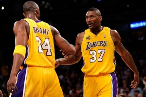 2010年6月17日,湖人和凱爾特人在總決賽中迎來生死戰(zhàn)。比賽到第四節(jié)雙方殺得難解難分,還剩1分鐘時科比傳球給阿泰斯特,后者投進(jìn)了鎖定勝局的三分,幫助球隊最終捧起總冠軍獎杯。是役,科比拿下23分,阿泰斯特貢獻(xiàn)全隊第二高的20分。綠軍雖然首發(fā)五虎全部得分上雙,但還是遺憾落敗。