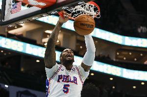 76人內(nèi)線德拉蒙德上半場替補(bǔ)出戰(zhàn)表現(xiàn)出色,不僅是前場籃板搶得很兇,籃下終結(jié)也很高效。