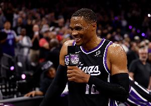 此役,威斯布魯克出戰(zhàn)35分25秒,13中9,其中三分4中3,罰球2中2,得到23分16籃板10助攻1搶斷