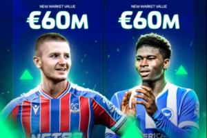 體育資訊10月17日訊 德轉(zhuǎn)今日更新英超身價(jià),其中巴萊巴和沃頓都得到了大幅提升,漲至6000萬歐。沃頓本次的漲幅是1500萬歐,巴萊巴漲幅是2000萬歐。