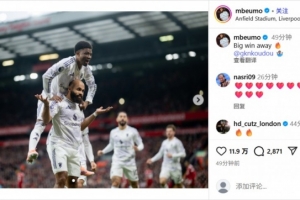 賽后,此役閃擊破門的姆伯莫更新社媒慶祝勝利,他寫道:關鍵的客場勝利??
