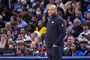 談到自己在湖人隊的執(zhí)教,他說:“我接手的時候,球隊上賽季的戰(zhàn)績是33勝49負,而我執(zhí)教的那個賽季,我們比上賽季多贏了10多場,最終以43勝39負收官。從西部第13、14名,到最終獲得附加賽資格,還擊敗了安東尼?愛德華茲領銜的年輕、有沖勁的明尼蘇達森林狼隊,成功晉級季后賽。之后我們淘汰了灰熊,擊敗了衛(wèi)冕冠軍勇士,他們有斯蒂芬?庫里、德雷蒙德?格林、克萊?湯普森這些名人堂級別的球員。最后在西部決賽中遇到了當時狀態(tài)正佳、現(xiàn)在依然頂尖的尼古拉?約基奇領銜的丹佛掘金隊,他們太強大了?!?/p>