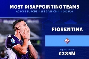 體育資訊11月7日訊 德國轉(zhuǎn)會(huì)市場根據(jù)球隊(duì)的身價(jià)和目前的排名,列出了本賽季歐洲頂級聯(lián)賽最令人失望球隊(duì),佛羅倫薩、紐卡、畢爾巴鄂競技在列。