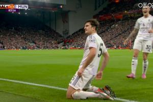 體育資訊10月20日訊 英超第8輪利物浦vs曼聯(lián),第84分鐘B費助攻馬奎爾頭球破門!曼聯(lián)再下一城,2-1領先利物浦。馬奎爾的慶祝,堪稱帥氣!