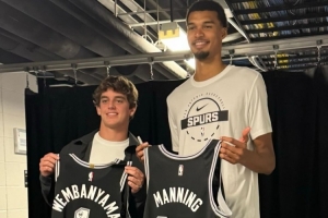 本場比賽,德克薩斯大學橄欖球隊球員阿奇·曼寧等人現場觀看了本場比賽,并受到了文班亞馬及福克斯的接待。星三代阿奇·曼寧還和文班互換了球衣。