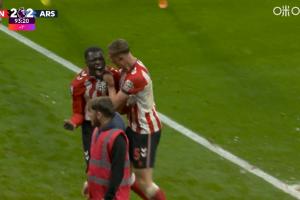 體育資訊11月09日訊 英超第11輪,阿森納客戰(zhàn)桑德蘭。補(bǔ)時(shí)第94分鐘,布羅比側(cè)勾破門,拉亞出擊未撲到,桑德蘭2-2阿森納!