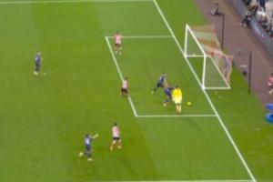 比賽第85分鐘,桑德蘭進攻,拉亞撲出布羅比的近距離射門后“脫線”沒能找到足球,隨后在加布里埃爾的提醒下將球沒收!