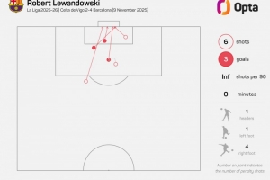據(jù)Opta統(tǒng)計,37歲80天的萊萬是本世紀(jì)西甲第三年長的戴帽球員,僅次于若熱-莫利納(39歲241天)、華金-桑切斯(38歲140天)。