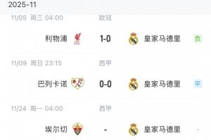 接下來(lái)皇馬四個(gè)客場(chǎng)對(duì)手分別為埃爾切、奧林匹亞科斯、赫羅納和畢爾巴鄂競(jìng)技。