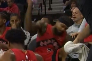 “很多人都認為他應(yīng)該站起來道歉。我理解他的沮喪,他在比賽中摔倒得很尷尬,而且那是一場艱難的比賽,他們有很多失誤,最終沒能贏得比賽。但我不認為這是正確的回應(yīng)方式。有人說他像三歲小孩一樣,確實如此,這種事情經(jīng)常發(fā)生在有小孩的家庭里。但我認為這不是合適的反應(yīng)。他應(yīng)該對此道歉,但他沒有這樣做,沒有任何反應(yīng)。我不知道他當(dāng)時是怎么想的,但作為一個普通人,我認為他應(yīng)該有所表示。他不應(yīng)該坐在那里看著大家清理,尤其是當(dāng)水濺到隊友臉上時。他應(yīng)該幫助清理,而不是讓別人的生活變得更加困難。也許這是因為他是超級富豪,覺得這些人理應(yīng)為他服務(wù)。但我們不應(yīng)該輕易下結(jié)論。他看起來非常沮喪,可能只是心情不好而已?!盌onnie Freeman表示。