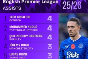 體育資訊11月11日訊 英超聯(lián)賽已經(jīng)進(jìn)行了11輪,squakwa也統(tǒng)計(jì)了本賽季英超助攻情況,格拉利什等3人并列居首。