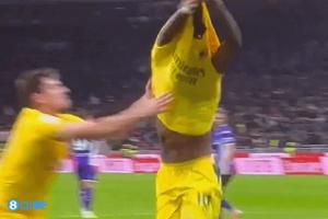 第86分鐘萊奧點球破門助米蘭反超,之后他想脫衣慶祝,被加比亞攔截。