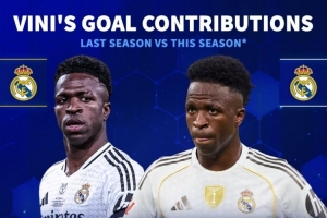 體育資訊11月11日訊 德國轉(zhuǎn)會市場統(tǒng)計了維尼修斯上賽季和本賽季的數(shù)據(jù),這位皇馬前鋒的效率有所下滑。