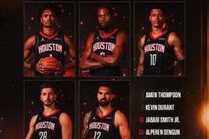 體育資訊10月21日訊 火箭主教練烏度卡透露球隊(duì)新賽季揭幕戰(zhàn)對(duì)陣?yán)做氖装l(fā),分別為阿門-湯普森、杜蘭特、小賈巴里-史密斯、申京和史蒂文-亞當(dāng)斯。