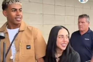 在活動(dòng)現(xiàn)場,亞馬爾和女友妮基-妮可面對媒體的鏡頭秀起了恩愛,兩人顯得非常開心和輕松。