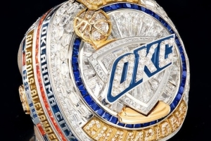 體育資訊10月22日訊 NBA新賽季揭幕戰(zhàn)雷霆主場迎戰(zhàn)火箭,賽前雷霆領(lǐng)取上賽季總冠軍戒指。