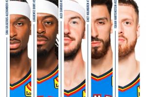 本場(chǎng)比賽,衛(wèi)冕冠軍俄克拉荷馬雷霆的首發(fā)陣容是: