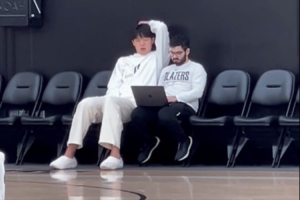 王猛配文寫(xiě)道:“一段視頻證明楊瀚森的英語(yǔ)水平進(jìn)步速度。這是今天訓(xùn)練之后楊瀚森和助理教練在場(chǎng)邊一起看錄像的鏡頭。翻譯一直不在,大概持續(xù)了七八分鐘,我這只截取了一小段。全程靠自己,有說(shuō)有笑,樂(lè)樂(lè)呵呵。”