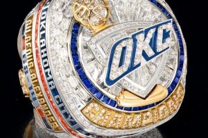 雷霆冠軍戒指:14K白金與黃金打造 鉆石鑲嵌球員號碼&內(nèi)嵌副戒