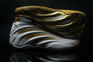 非常符合今天戒指之夜的主題,白金的鴛鴦配色。細(xì)節(jié)上有標(biāo)志性的慶祝手勢(shì),鞋底還有總冠軍獎(jiǎng)杯圖案,鞋墊處則有偶像科比的畫(huà)像。