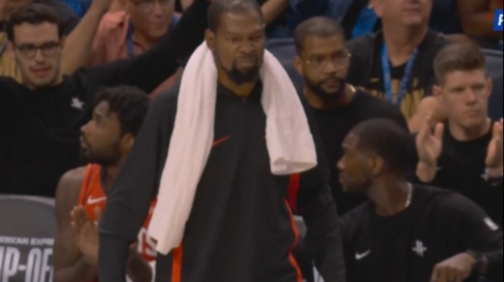 GIF-申京神奇打板中投命中&造成犯規(guī) 全隊(duì)起立杜蘭特撇嘴做鬼臉