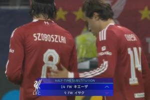 體育資訊10月23日訊 歐冠聯(lián)賽階段第3輪利物浦客戰(zhàn)法蘭克福下半場(chǎng),利物浦換下伊薩克,換上基耶薩!